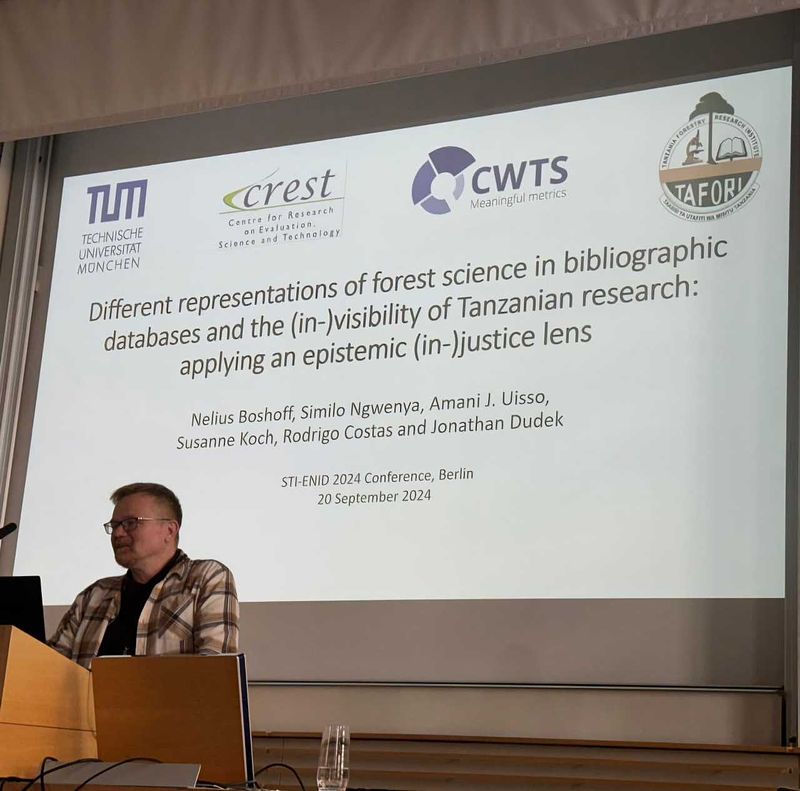 As part of a panel on Open Data Sources, Prof. Nelius Boshoff presented preliminary results from a combined bibliometric and content analysis conducted as part of the In-Forest project at the 28th International Conference on Science, Technology and Innovation Indicators 2024 in Berlin. Ahead of the conference, the team held a hybrid meeting at the Robert K. Merton Center.