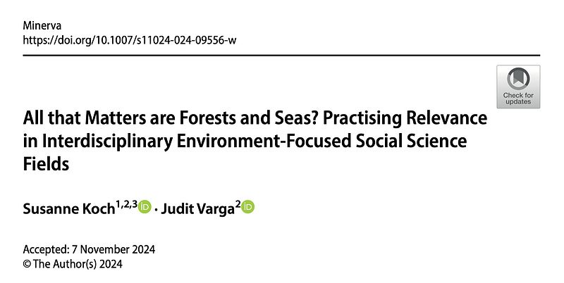 In an era where research is increasingly expected to address pressing societal and environmental challenges, a new study by Susanne Koch and Judit Varga critically examines what how social scientists working on forests and seas practice ‘relevant’ research, and what accounts for differences in the orientations of these fields. The article has been published in Minerva.