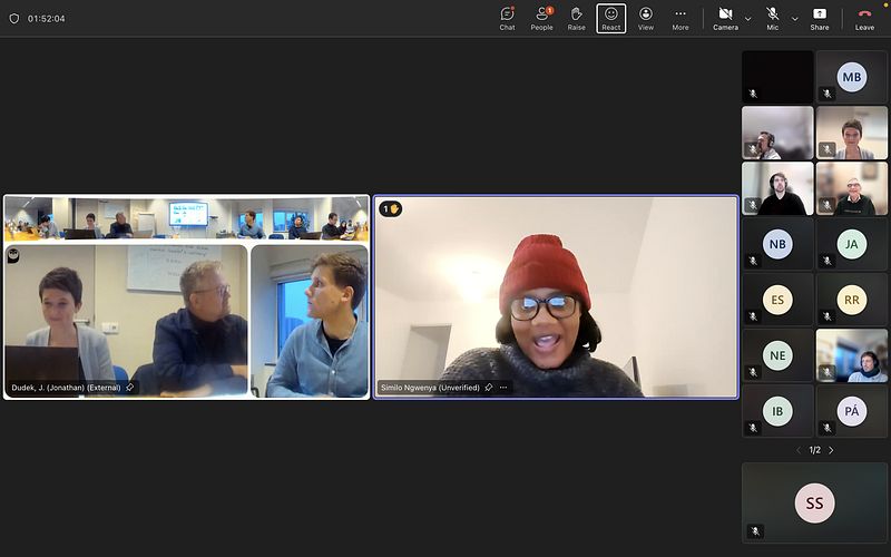 A highlight of the week was a hybrid public talk in the CWTS Research Seminar series (see recording on the seminar webpage). It provided an opportunity to present project outcomes to a large and diverse international audience, including scholars from science studies and forest research. On behalf of the team, Nelius Boshoff and Susanne Koch presented the project’s core findings, synthesizing results from the bibliometric and qualitative analyses conducted over the past four years. The talk illustrated how a multi-method research design makes it possible to study social and epistemic inequalities in science, linking large-scale patterns with in-depth qualitative insights.