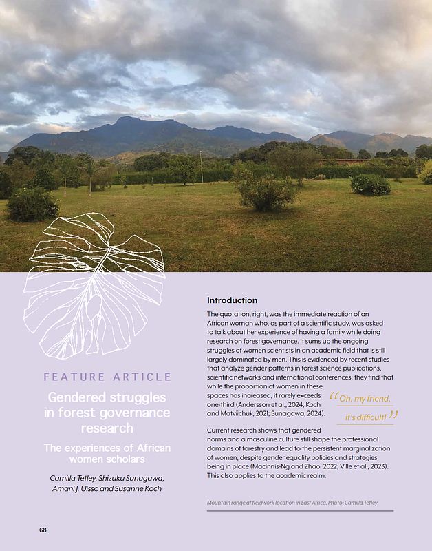 Tetley, C., Sunagawa, S., Uisso, A.J., Koch, S. (2025). Gendered struggles in forest governance research: The experiences of African women scholars.